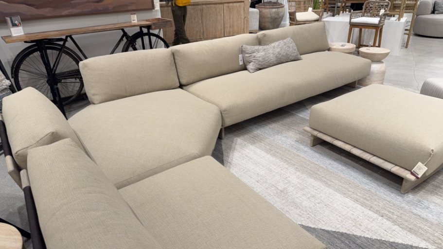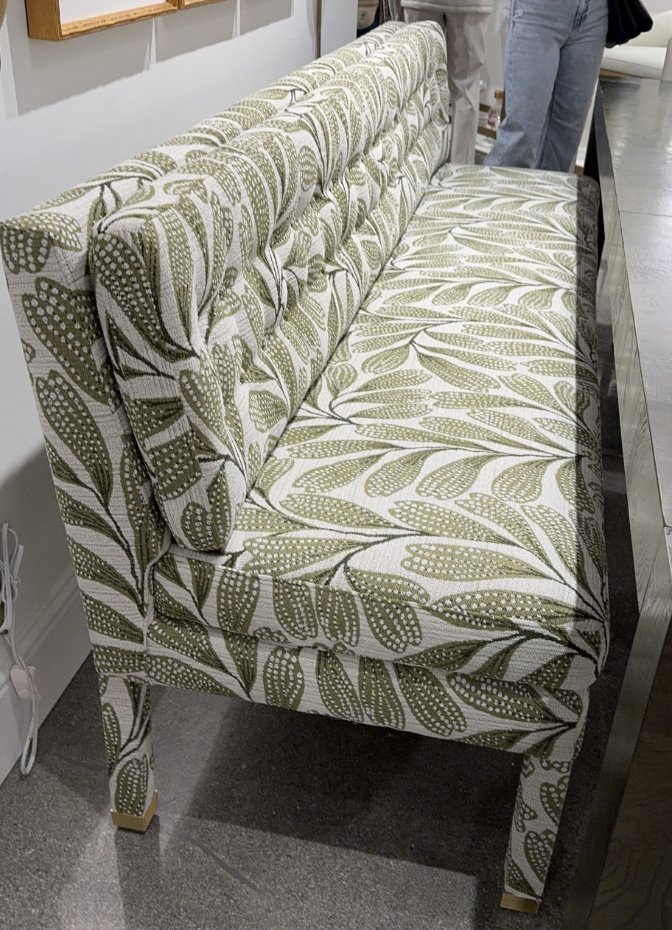 Equally captivating are the upholstered furniture legs making waves this season. Gone are the days of simple, traditional legs. Designers are embracing bold, sculptural legs that make furniture feel like art. Whether it’s plush, upholstered legs that add softness to a piece or more intricate, geometric designs, this detail brings a modern twist to classic furniture pieces, blending function and form in a way that enhances the overall design. And why not with all of the amazing fabrics we saw? Dining chairs, benches and ottomans all featured this new trend.
