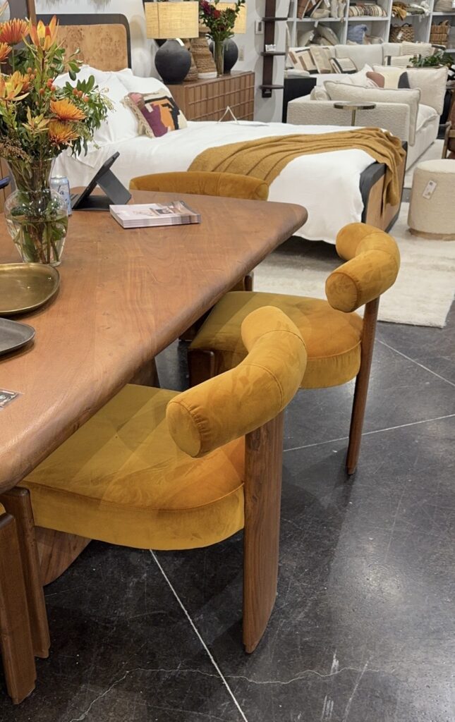 Much like the 70’s resurgence, these designs are making a bold return, and Mariah saw this trend pop up in a variety of forms throughout the market. Alongside these tables, pedestal chairs are also making a strong comeback. With their sleek, solid bases and unique silhouettes, pedestal chairs bring a modern twist to classic shapes, often paired with luxurious upholstery for added sophistication. These two trends are a perfect reflection of the playful, retro vibes of the 70’s, giving interiors a mix of vintage charm and contemporary flair. They’re the perfect pieces to bring both style and personality into any space, proving that some classics never go out of style.