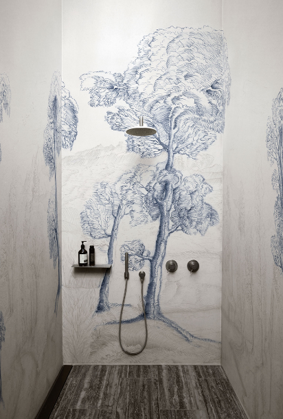 - Many celebrities are wowing their guests with wallpaper in the shower. Would you try it in your home?