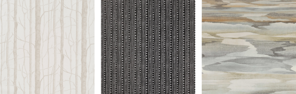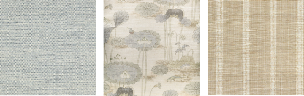 There are so many different materials used in today’s wallpaper collections. Certain materials are better suited for particular spaces and uses. For example, wet spaces (baths and kitchens) and high traffic areas require different wallpaper specs than those in low traffic areas and ceilings.