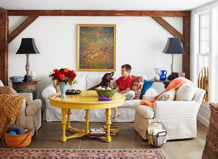 Look for pieces that double as storage. For instance, a round coffee table that features a flat top for playtime, along with a handy deep drawer for stowing away toys. Quick clean up options are a must for maintaining a clutter-free and stylish living room.