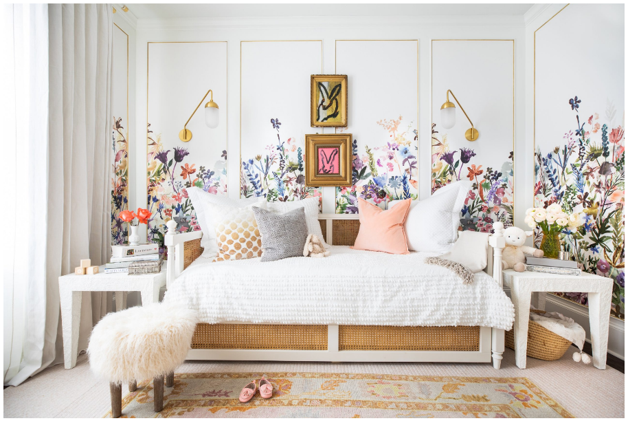 When it comes to kids’ room paint ideas, white or light neutral paint will give you great staying powder and more flexibility for easy changes down the road. But, having said that, paint is also the most economical update, and it gives the biggest impact. And with all of the temporary, easy-to-install murals and wallpaper today, a bold papered wall is a great choice too.