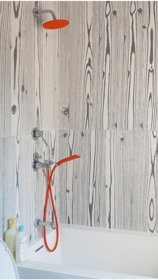 If you’re renting and can’t make permanent changes to your child’s bathroom, swapping the fixtures is a temporary way to have fun with color. This bright orange faucet adds a touch of whimsy to an otherwise neutral space.