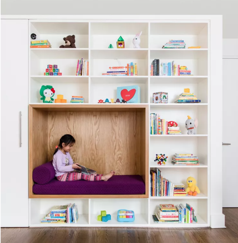 To calm everyone down from bouncing on their bunkbed, rock climbing, or going down the slide 100 times, we bring you reading nooks!