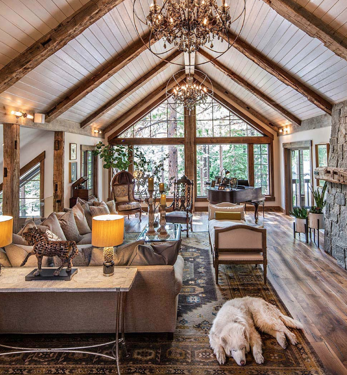 Specialty lighting is a must. Vaulted/cathedral ceilings offer opportunities for creative lighting solutions, such as recessed lighting, pendant lights, chandeliers or accent lighting. Consider up-lighting, accent lighting and even skylights to enhance the space and add visual interest.