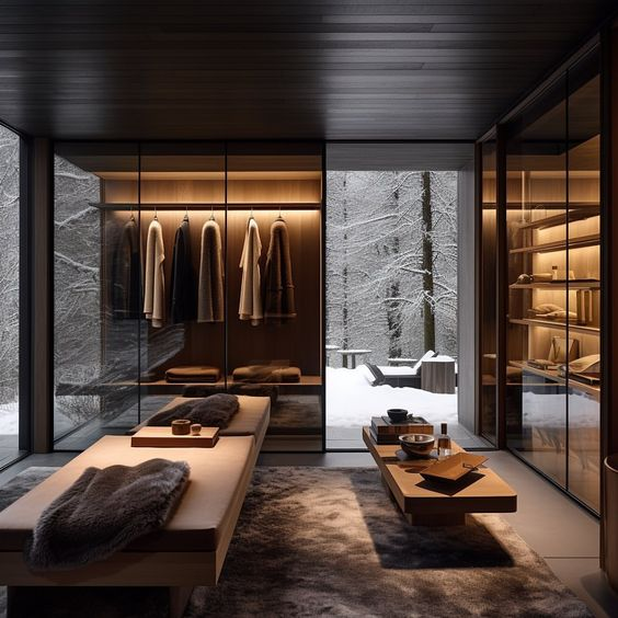 - Natural Lighting – Large windows and sliding doors are crucial to allow natural light to flood into the room.