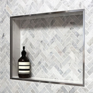 A Schluter is a stainless-steel metal strip used as edge protection or to achieve a clean line when transitioning from tile to another material or corner edge. There are multiple height, profile, and finish options to match your bathroom and kitchen hardware.
