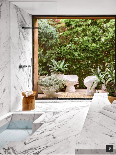 The bold marble wall is inspired by an art movie called “I am Love”, where the house was adorned with multiple marble walls & floors.
