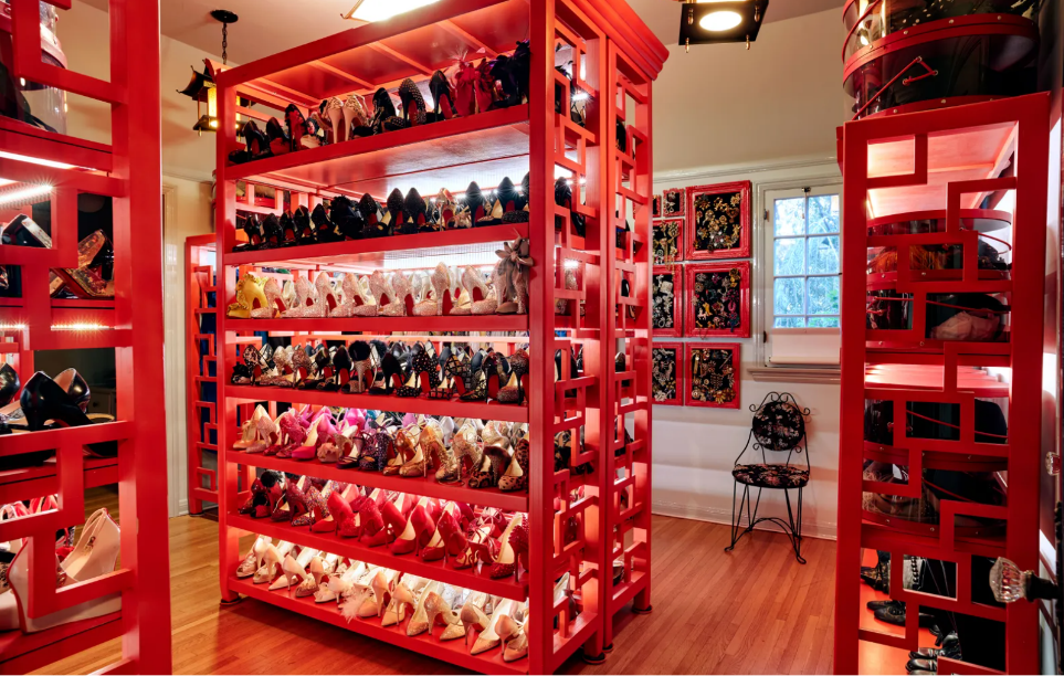 What once was a young girl’s bedroom is now an accessories closet. “It’s just that Christian Louboutin is one of my closest friends, so yeah…I have a lot of shoes.” – Von Teese