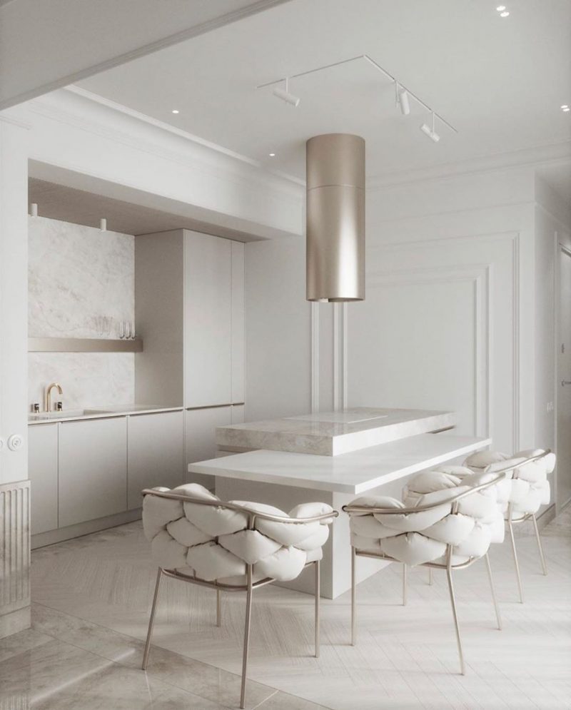 - Rather than minimalism, all white or monochromatic interiors are out. It has been out the doorway for a while- especially since the pandemic, but now it’s officially out. This photo that demonstrates the former trend looks incomplete because it lacks life.