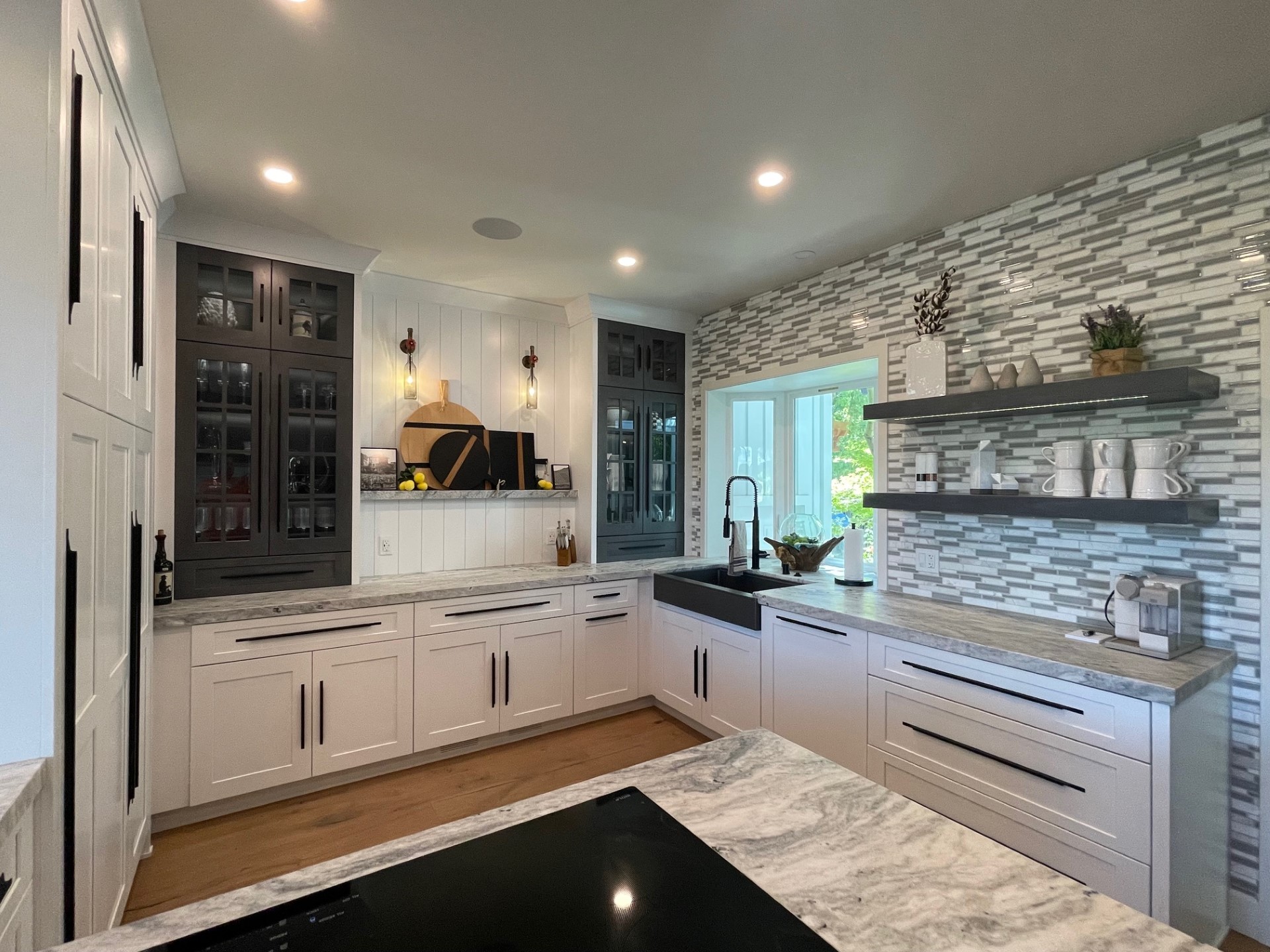 At the heart of the Lande home, the kitchen balances practical performance with refined design. Talie Jane Interiors focused on optimizing workflow and functionality without compromising on style. Custom cabinetry was paired with high-quality hardware and finishes to create a cohesive and durable environment for everyday use. The layout enhances efficiency with thoughtfully placed storage zones and work surfaces, while integrated appliances contribute to a streamlined aesthetic. The color palette and material selections — combining warm neutrals and subtle contrasts — ensure this space feels both welcoming and timeless. Strategic lighting was used to support task areas and accentuate design details, reinforcing the kitchen as both a workspace and a gathering place.
